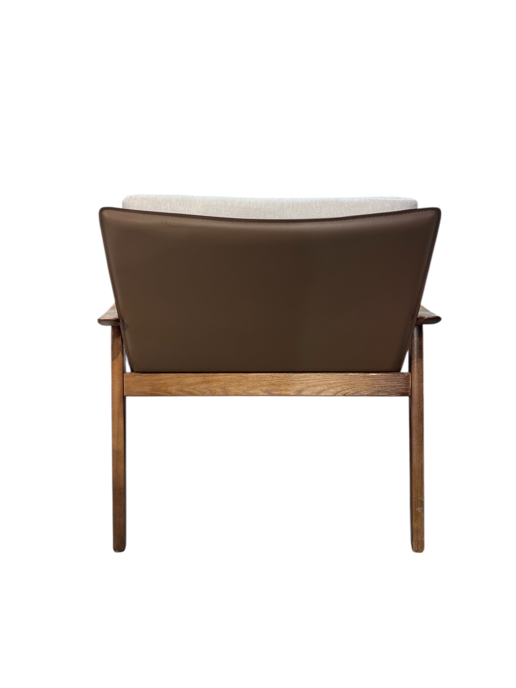 כורסא מעוצבת בסגנון מודרני-פיסולי, המשלבת מעטפת חיצונית בגוון כהה עם ריפוד בד בדוגמת אריג קלאסית ליצירת מראה אלגנטי ובולט.